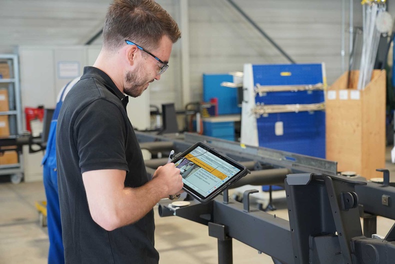 Nakon prelaska na digitalizovane proizvodne dokumente, radna uputstva se automatski ažuriraju iz ERP sistema, čime se omogućava evidencija praćenja radi revidiranja. Radna uputstva i relevantna dokumentacija prikazuju se na tablet računarima za svakog radnika, a proizvodni uređaji duž linije za montažu (kao što su pametni alati i oprema za testiranje) povezuju se sa sistemom i tako obezbeđuju sledljivost kvaliteta.